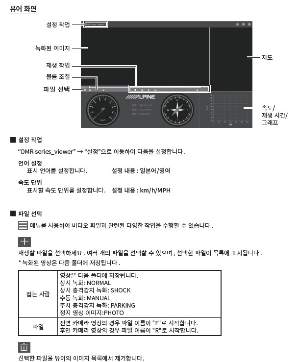 알파인 디지털 미러 DVR-DM100KO-IC 제품의 뷰어 프로그램입니다.